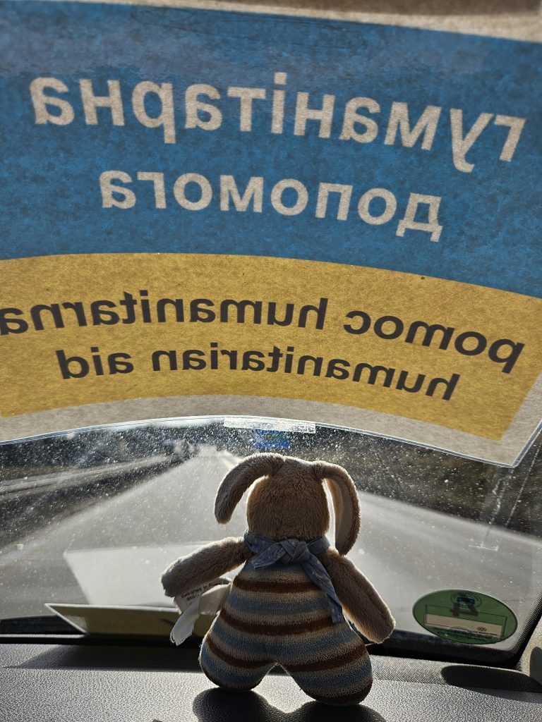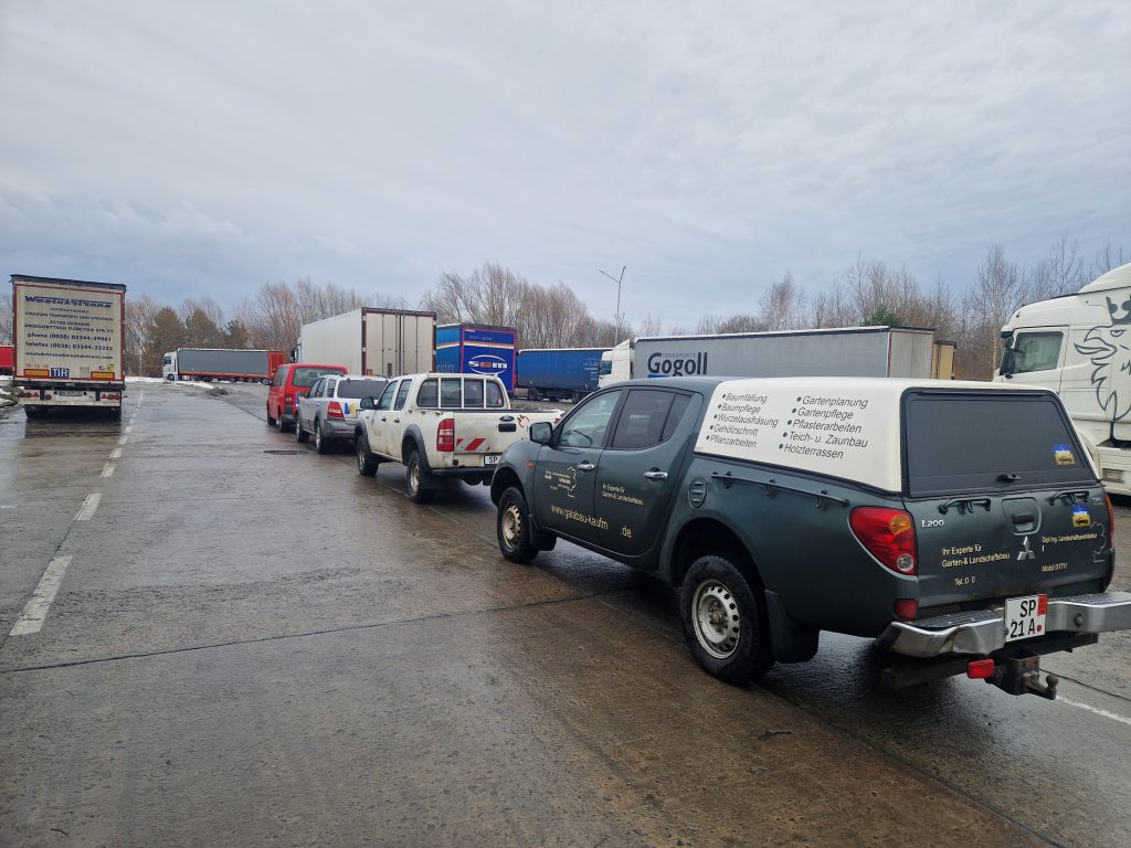 Draußen auf dem Parkplatz stößt ein Mann mit seinem Auto zu uns und fragt, ob wir in die Ukraine fahren. Er hätte isotonische Getränke für die Leute an der Front dabei, ob wir sie mitnehmen könnten. Ich lehne dankend unter Hinweis auf den Zoll ab – aber eigentlich geht es uns darum, dass wir nicht von irgendwelchen Unbekannten Dinge oder Nahrungsmittel mitnehmen. You never know.