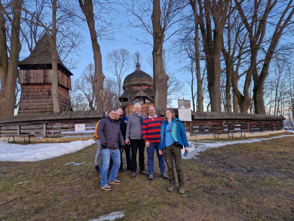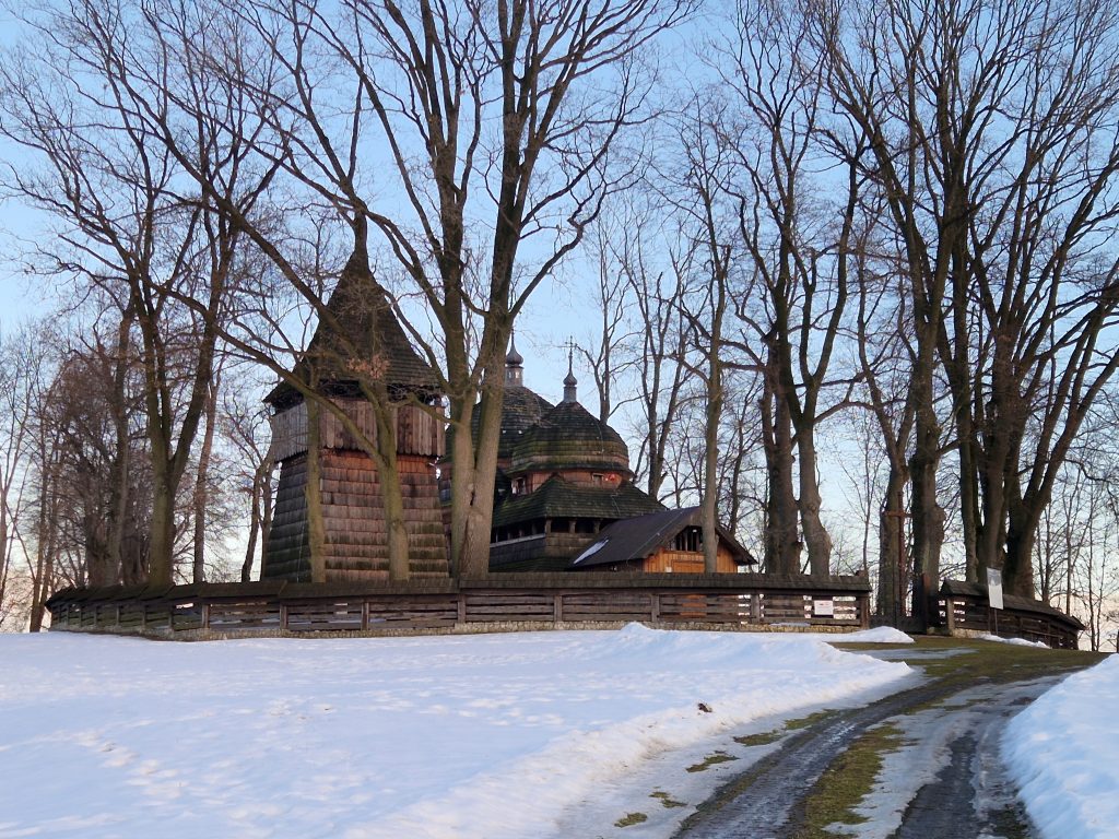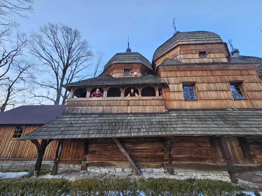 Wir kommen gut voran, und so beschließen wir, vor der Zollagentur in Radymno noch die griechisch-katholische Holzkirche in Chotyniec zu besichtigen, die Michael mir bei unserer zweiten Fahrt – vor rund 3 Jahren – das erste Mal zeigte. Ein rundlicher, mit Holzschindeln eingedeckter Bau aus dem 17. Jahrhundert, mit niedrigen Räumen, kleinen Fenstern und – in der milden, von tauendem Schnee feuchten Luft – einem intensiven Duft nach Holz.