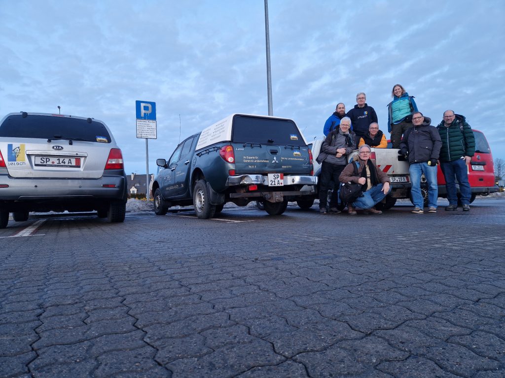 In den letzten Sonnenstrahlen machen wir abends noch das Gruppenfoto, dann laufe ich zur Zollagentur und beantrage die Ausfuhrpapiere. Ein bisschen mulmig ist mir. Das war bisher Michael’s Aufgabe. Ich kann kein Polnisch. Ein paar Sätze habe ich mir auf DeepL zurechtgelegt und die Aussprache geübt. Aber es ist keine längere Erklärung nötig. Sie finden unsere Organisation in ihrem System, und alles wird prozessiert.