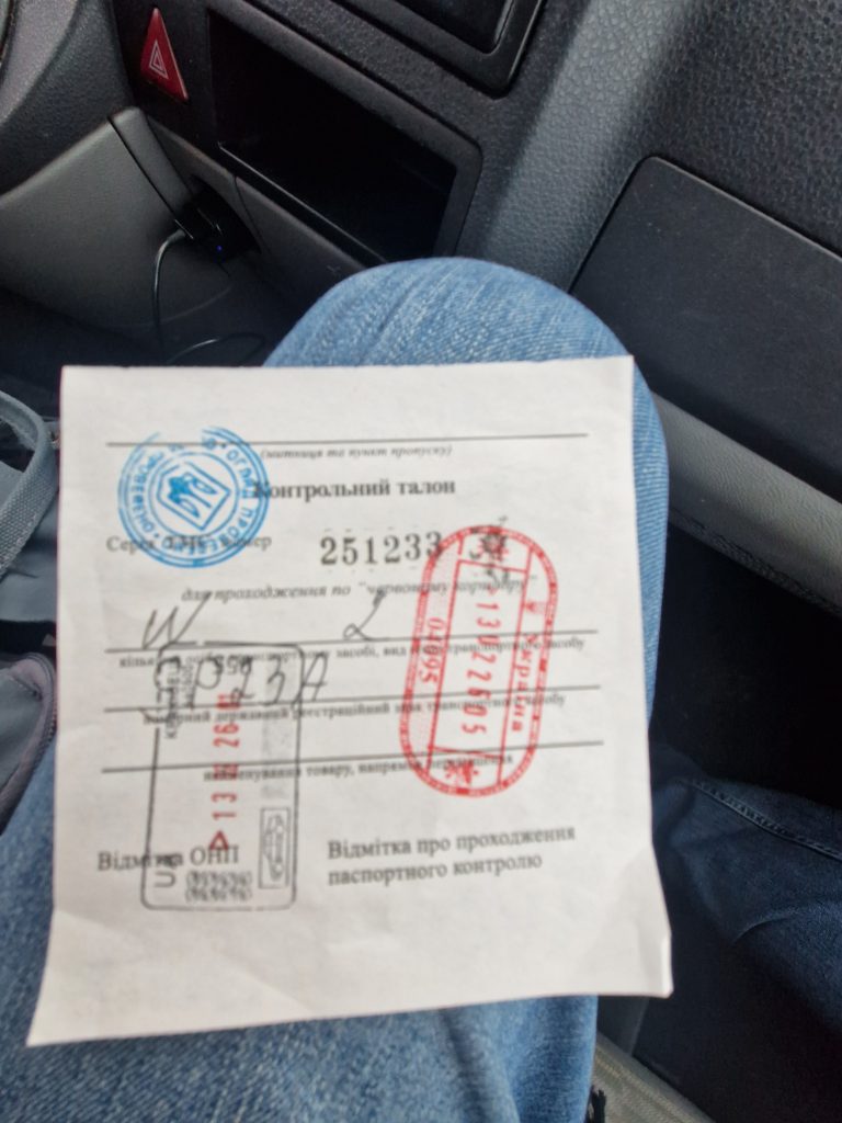 Wir brechen bereits um 0700 zur Grenze auf. Alles bestens, keine Schlange. Ein niederländischer Kleinbus wird von den polnischen Zöllnern priorisiert, weil er wohl zu einer Gruppe von Rot-Kreuz-Fahrzeugen gehört. Es gibt jedoch Schwierigkeiten mit seinen Dokumenten, so dass wir irgendwann vorgelassen und überraschend schnell und unproblematisch abgefertigt werden. Wir fahren auf die ukrainische Seite und erhalten als erstes unsere „Talons“, die kleinen Laufzettel, auf denen man Stempel sammeln muss. Bisher waren das immer drei pro Zettel: Einen vor der Kontrolle, einen bei der Passkontrolle und einen dann beim Zoll. Wir bringen also die Passkontrolle hinter uns, haben bereits zwei Stempel, parken die Fahrzeuge zwischen den LKW-Schlangen und machen uns auf den Weg in den Keller zum Zoll.