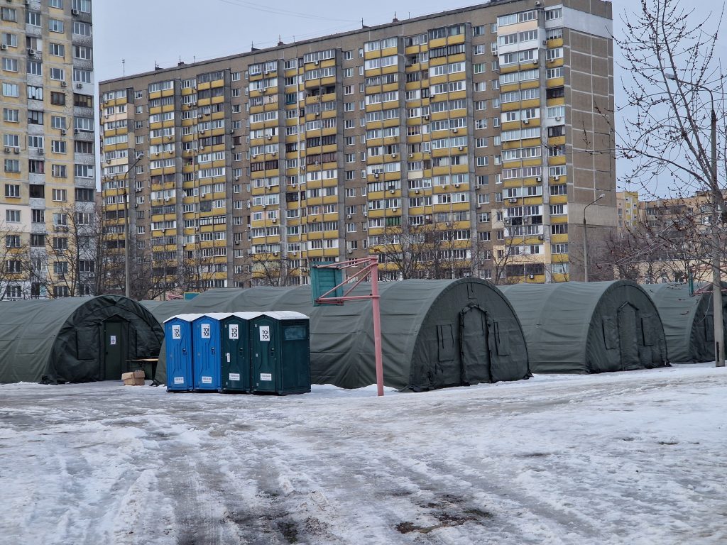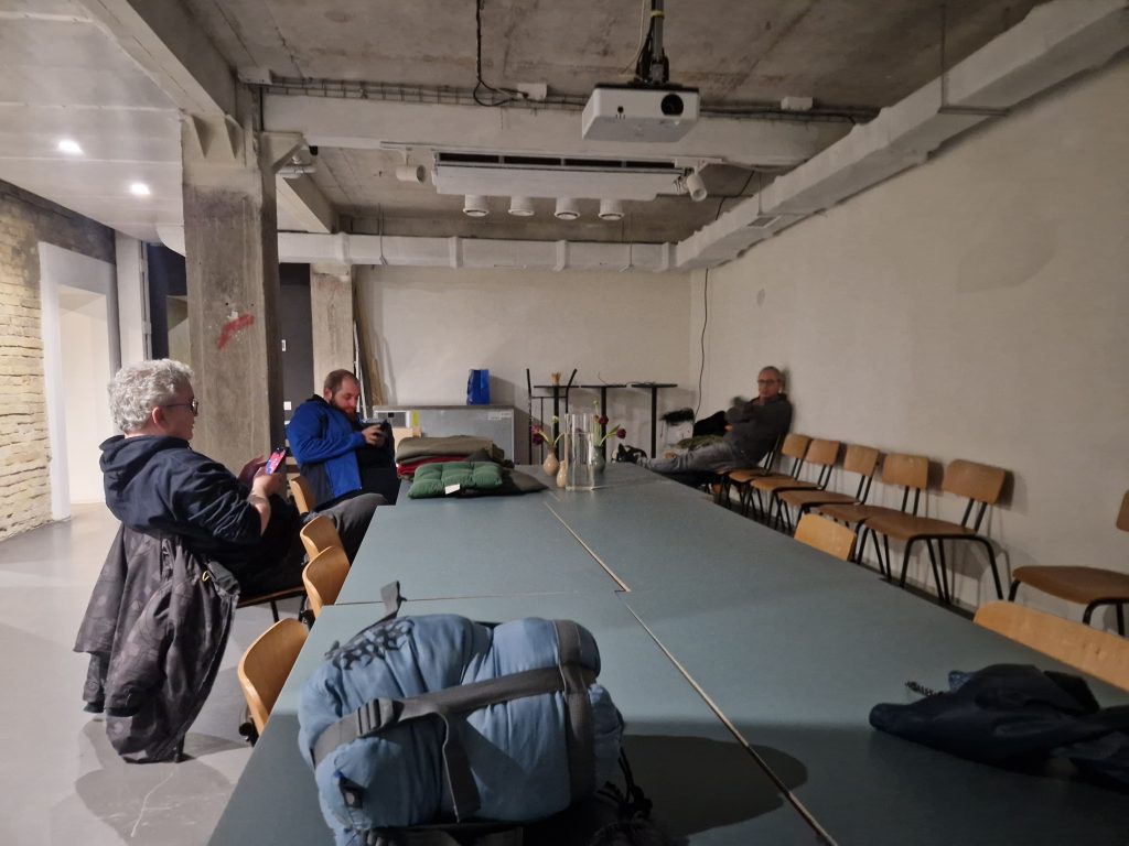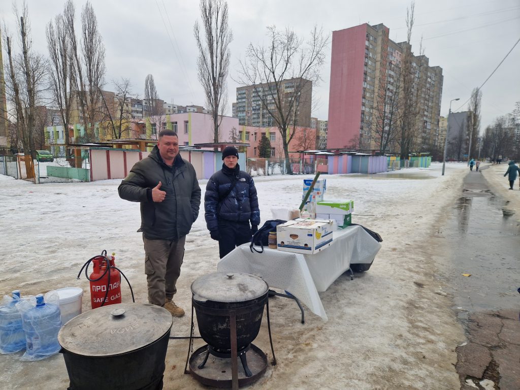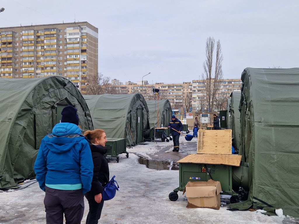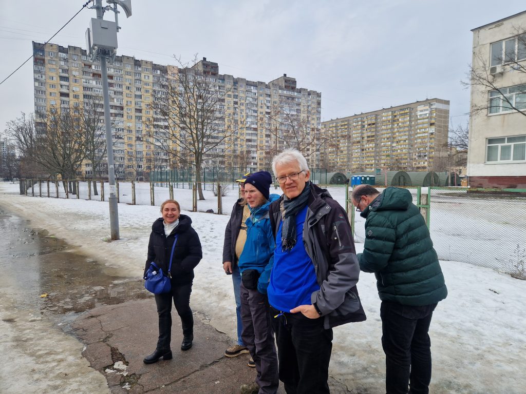 Abends gegen halb neun kommen wir an, Ruslan ist am Hub, unserem Treffpunkt, und freut sich uns zu sehen. Wir parken die Fahrzeuge und laufen zum Hotel. Wir checken ein, und der junge Mann am Empfang erklärt, dass sie im Hotel dank zweier Generatoren durchgängig Strom von 0800 bis 2300 Uhr haben, und typischerweise auch Heizung und warmes Wasser – welch ein Luxus. Selbst nachts gibt es teilweise Licht. Wir sind froh, denn das ist in Kyiv derzeit nicht selbstverständlich. Unsere SAP Kollegen haben uns berichtet, dass sie in ihren Apartments mitunter seit Wochen keine Heizung mehr haben, sie hoffen, dass die Temperatur in den Räumen nicht unter 6 Grad fällt. Strom gibt es ein bis zwei Stunden am Tag. Fließendes Wasser reicht aufgrund des geringen Leitungsdrucks in den Gebäuden nur bis zum 10. Stock, und man behilft sich damit, im Fitness-Studio zu duschen, und Trinkwasser im Supermarkt zu holen und immer dann die Sixpacks in die Wohnung hoch zu bringen, wenn der Aufzug gerade in Betrieb ist. Wir gönnen uns noch ein leckeres Abendessen in einem nahegelegenen Restaurant und hoffen auf eine ruhige Nacht in den Hotelbetten. Aber leider gibt es kurz nach unserer Rückkehr ins Hotel direkt Luftalarm, einschließlich angekündigter Raketen und Drohnen. Wir treffen uns alle im Schutzraum im Keller. Einige von uns setzen sich erstmal und warten ab. Andere beschließen, die Nacht dort zu verbringen und richten sich mit Schlafsack auf dem Feldbett ein. Der Alarm ist gegen halb eins vorbei, ich kriege es nicht mit und schlafe durch bis zum frühen Morgen, dann hole ich noch etwas Schlaf oben im Hotelzimmer nach.