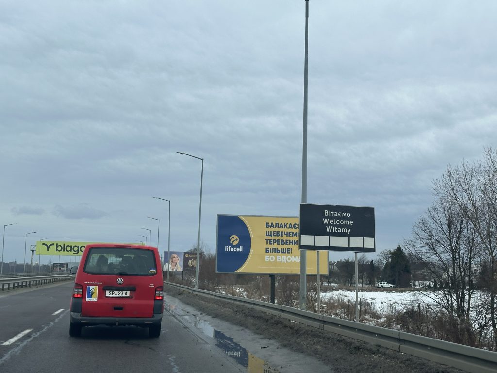 Direkt morgens kann ich noch die ukrainischen Zolldokumente von Lawyers Move drucken (es hat eine Panne im System gegeben, so dass wir sie erst auf den letzten Drücker erhalten haben). Nach einem entspannten Frühstück brechen wir dann in Richtung der ukrainischen Grenze auf. Wenn ich am Autobahnrand die ersten Schilder mit dem Eintrag „Korczowa“ sehe, die die Entfernung zum Grenzübergang anzeigen, wird mir wie immer warm ums Herz. Die Fahrt durch Südpolen ist ereignislos, mit sonnigem milden Wetter und ohne Berufsverkehr – wir sind schlicht zur richtigen Tageszeit in der Region Krakau. Je weiter wir ins Land fahren, desto mehr sehen wir die Reste des strengen Winters, der nicht nur Regionen in der Ukraine, sondern auch Südostpolen die vergangenen Wochen fest im Griff hatte. Viel Schnee, jetzt bei 12 Grad natürlich nass und schmelzend.