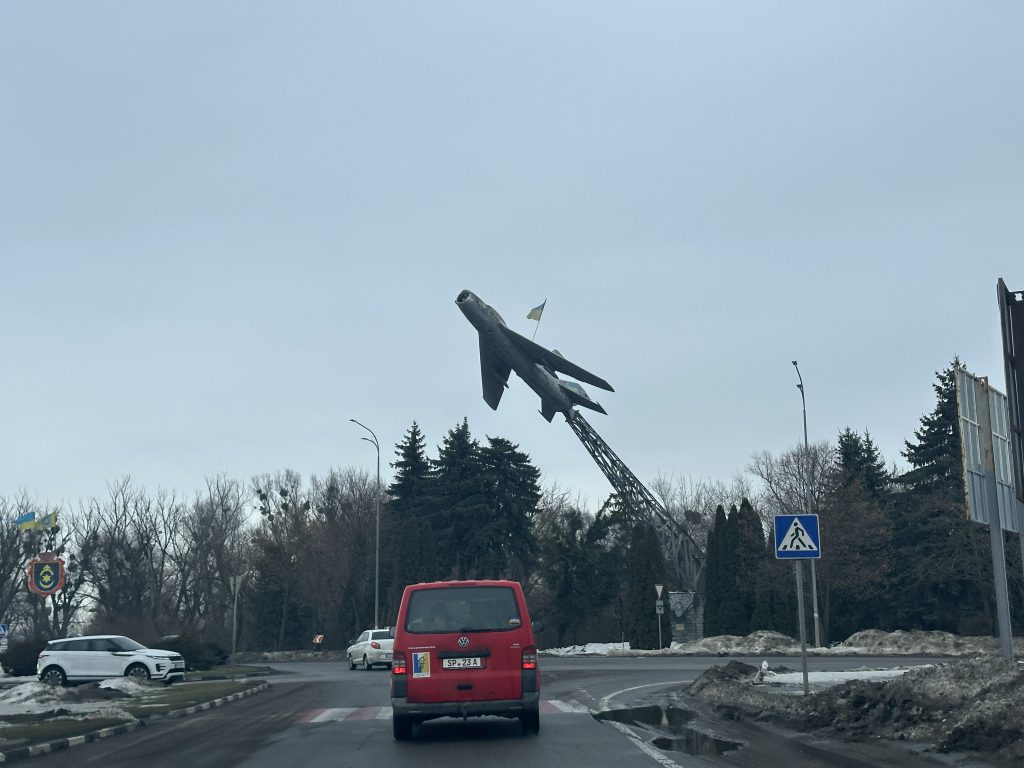 Wir fahren in Richtung L’viv und stellen fest, dass der Straßenbelag massiv unter dem strengen Frost gelitten hat. Jetzt regnet es, aber die Temperaturen sinken bereits wieder. Wir haben den Eindruck, es gibt viel mehr Schlaglöcher als in den bisherigen Jahren. Vorsichtiges Fahren ist angesagt. Nach L’viv legen wir eine kurze Rast ein, bei der alle vier Fahrzeuge wieder zusammenfinden, und wir fahren weiter Richtung Rivne. Plötzlich ist das GPS Signal verschwunden. Google Maps versucht, uns zu positionieren, aber vergeblich. Im Signal-Chat wird auf den aktuellen Luftalarm in der Region Rivne hingewiesen, das GPS wird von der Ukraine gestört, um den russischen Drohnen die Zielfindung zu erschweren. Ich verpasse die Ausfahrt auf die Umgehung südlich von Rivne, merke es rechtzeitig, wende zwei Mal und bin wieder auf der korrekten Route. Dabei verliere ich jedoch die drei folgenden Fahrzeuge, die stattdessen durch Rivne Stadt weiterfahren. Auch ohne online-Navigation kommen wir zurecht. Auf kahlen Feldkuppen sehen wir neben der Autobahn rund um Rivne Pickups mit auf der Ladefläche montierten, wegen des Nieselregens jedoch noch abgedeckten Maschinengewehren zur Luftabwehr. Vom eigentlichen Angriff bekommen wir nichts mit, und nach Rivne treffen wir uns wieder bei der nächsten Raststätte. Weiter geht’s über Zhytomyr nach Kyiv. Die Straßen sind geräumt, es sind wenig Autos und LKW unterwegs. Die Landschaft ist mit einer durchgehenden Schneedecke komplett weiß. Wir erreichen im Dunklen den Stadtrand von Kyiv. Der Verkehr wird ein wenig dichter, der Fahrstil der anderen Autos etwas chaotischer.